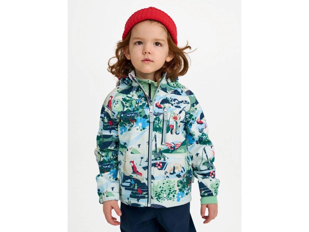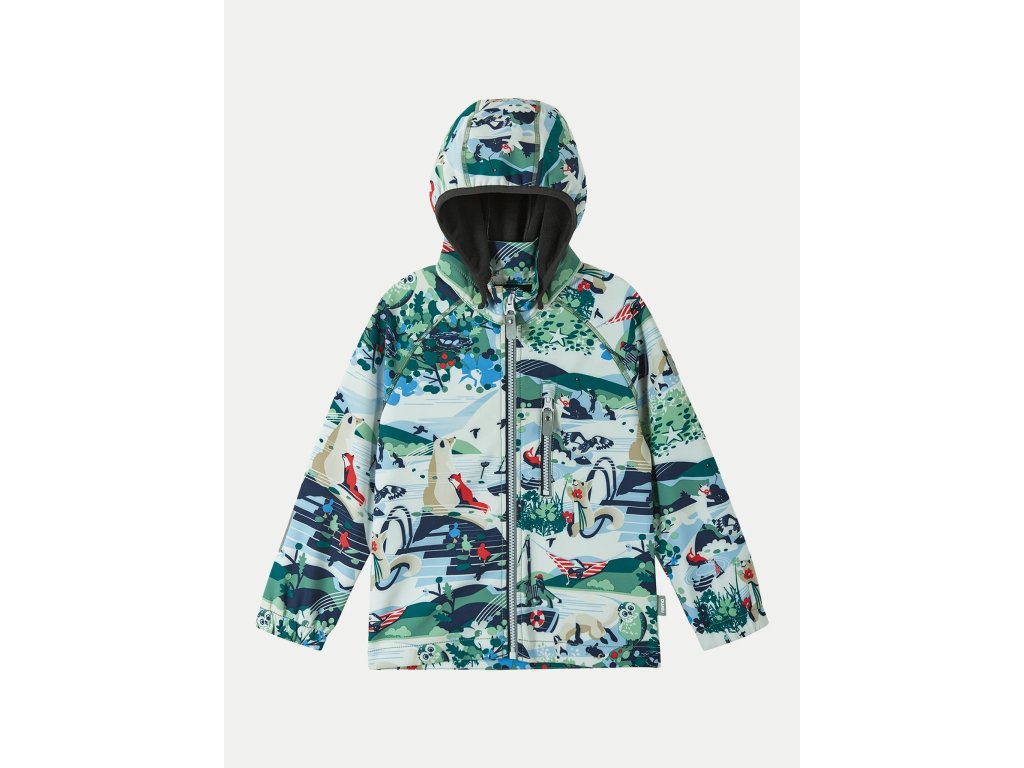 Dětská softshellová bunda s odepínací kapucí Reima Vantti je díky použitým materiálům, tj. Polyesteru, elastanu a polyuretanu, a povrchové úpravě Teflon EcoElite pružná, prodyšná, odolná vůči vodě, větru a nečistotám. Je zateplená podšívkou z fleece. Na předním dílu má celorozepínací zip s chráničem brady a kapsu na zip. Bunda má raglánové rukávy, které jsou zakončené pružnými manžetami.