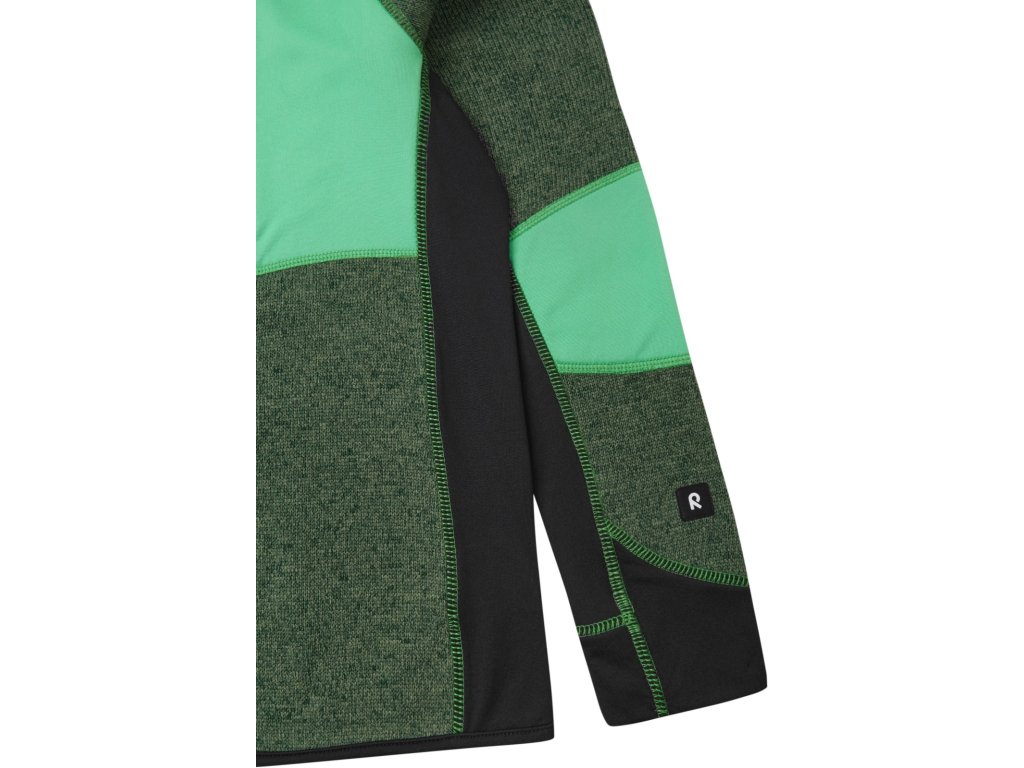 Atraktivní juniorskou mikinu Reima Liukuen lze nosit samostatně nebo jako hřejivou vrstvu pod svrchní oblečení. Použitý fleecový materiál je pružný, rychleschnoucí, velmi příjemný a pohodlný na nošení. Mikina má rovný střih, vyšší stojáček u krku, celorozepínací zip s chráničem brady, raglánové rukávy a kapsu na zip. Strečový materiál na loktech a bocích zvyšuje volnost pohybu.