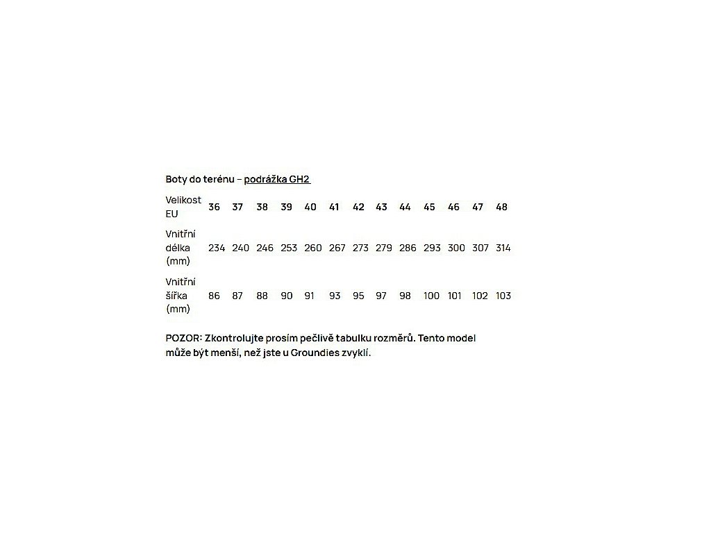 POZOR: Zkontrolujte prosím pečlivě tabulku rozměrů. Tento model může být menší, než jste u Groundies zvyklí.