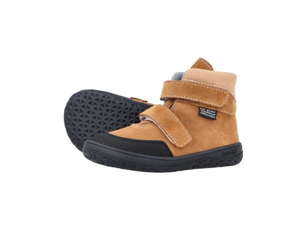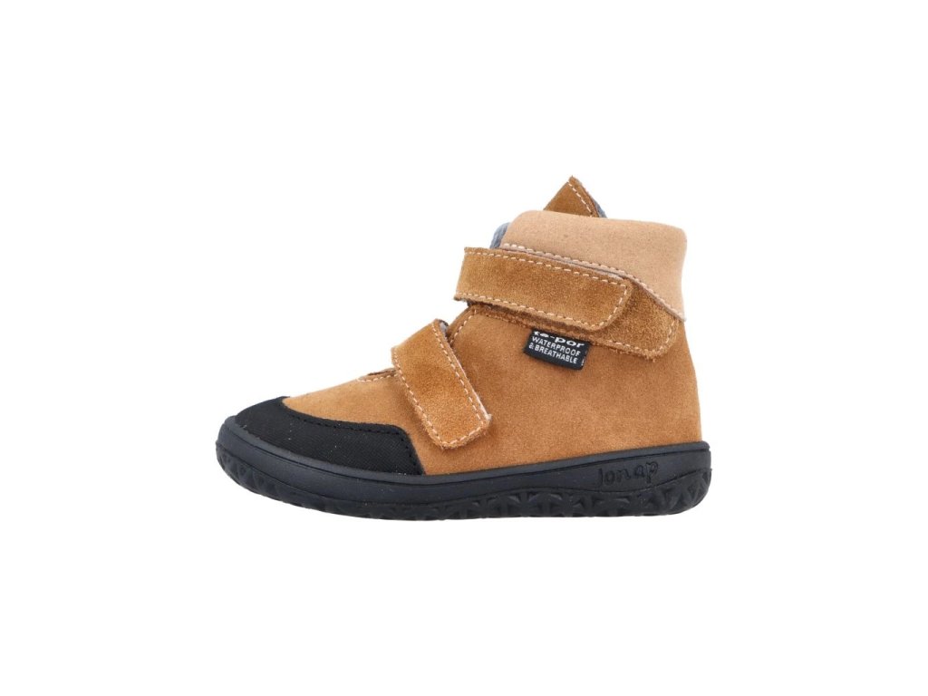 Dětské boty Jonap Jerry jsou extrémně odlehčená obuv s membránovou podšívkou Tepor navržena tak, aby co nejvíce umožňovala přirozený vývoj dětské nožičky a pohyb chodidla při chůzi a běhu. Nepromokavost zajišťuje kvalitní, prověřená, membrána TEPOR a v kombinaci s kvalitní kůží má obuv i dobrou prodyšnost. Svršek obuvi - broušené kůže s membránou Tepor (membrána zabraňuje pronikání vlhkosti zvenčí do boty, a na druhé straně propouštět z obuvi směrem ven vodní páry, které se v botě vytváří (pot z chodidel). Nohy tak jsou neustále v suchu a teple.) Stélka z paměťové pěny. Široké špičky bot jsou vhodné pro volný pohyb prstíčků. Praktický okop na špičce. Extrémně lehká, ohebná a široká podrážka v prstové části.