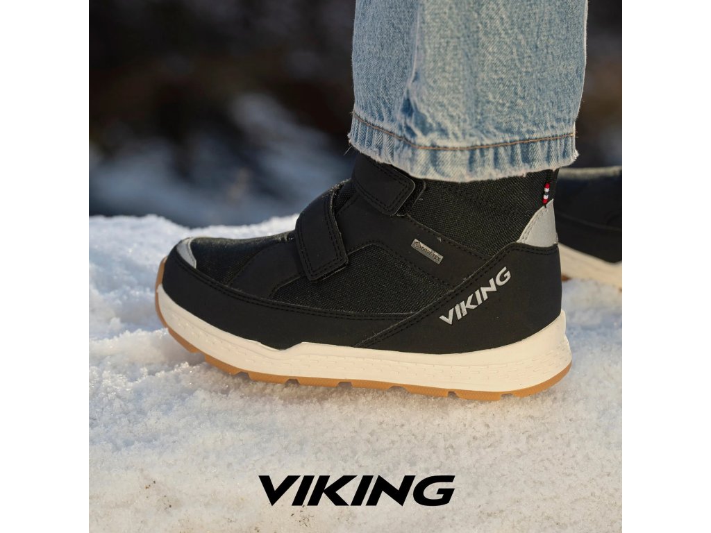 Zimní boty Viking Espo Warm GTX 2V Navy v tmavě modré barvě s reflexními prvky od norského výrobce Viking. Vyšší boty sahající do 1/3 výšky lýtek. Model Espo se svým sportovním zpracováním hodí jak na zimní kopečky, tak i do města. Podrážka je pevnější, s hrubým vzorkem, protiskluzová. Uvnitř bot je teplý kožíšek pro větší komfort, a membrána Gore-tex zajistí nepromokavost a prodyšnost zároveň. Boty jsou opatřeny zapínáním na suchý zip pro dobré utažení a zároveň pohodlné obouvání. Vyjímatelná stélka pro možnost kontrolu velikosti, reflexní prvek na patě a špičce pro lepší viditelnost.